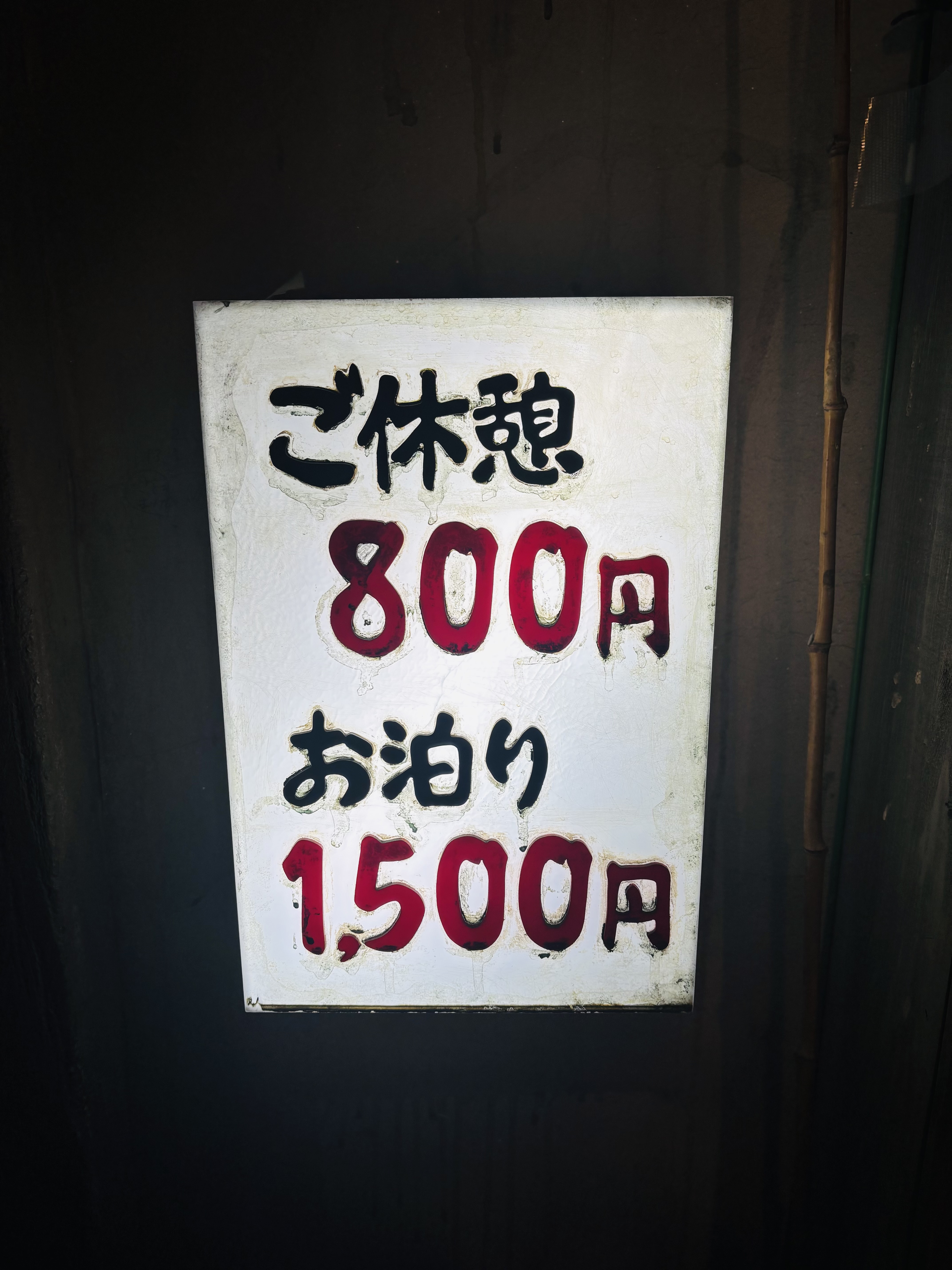 『ご休憩』と『お泊まり』の値段だけが書かれた看板。